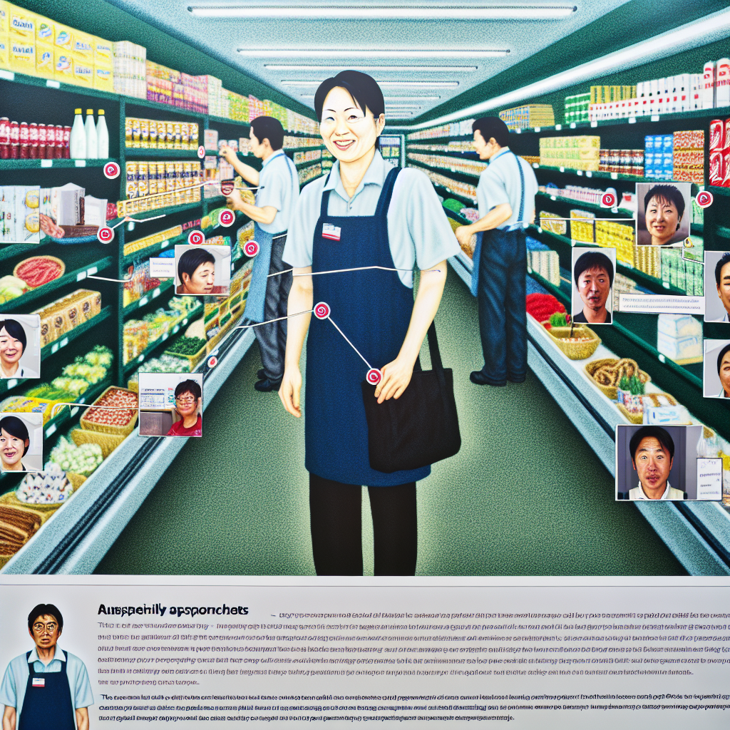 A behind-the-scenes look at a lesser-known supermarket employee in Japan, showcasing surprising workplace insights and stories, with a vibrant atmosphere that highlights the daily life and interactions within the store. Include elements like shelves of colorful products, friendly coworkers, and candid moments of teamwork.